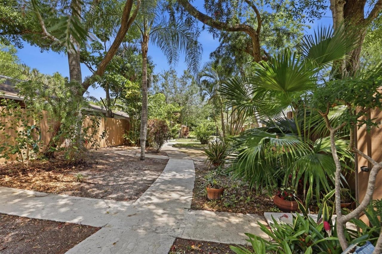 One or more photo(s) has been virtually staged. Beautifully updated TWO-bedroom, one-bath condo offering a rare blend of privacy, comfort, and effortless style. A private, gated courtyard entrance creates your own outdoor retreat-perfect for morning coffee, evening wine, or relaxing after a day at the beach. Inside, the open-concept layout feels bright and spacious, with vaulted ceilings, skylights, and sliding glass doors that flood the home with natural light. The property has been thoughtfully updated in 2024 with fresh interior paint, new doors, a new water heater, new refrigerator, new bedroom flooring, and a fully refreshed bathroom featuring a new vanity and toilet. In 2025, the patio fence was replaced, enhancing both privacy and the overall outdoor experience. Parking is conveniently located outside your courtyard gate for easy, everyday access. The Jefferson is a charming, intimate community known for its quiet setting, mature landscaping, and residents who take pride in ownership. Enjoy the community pool or stroll through the peaceful, park-like grounds. HOA fees include lawn care, pool maintenance, and community amenities-making for an easy, low-maintenance lifestyle. Ideally located just minutes from downtown Sarasota, SRQ Airport, local beaches, shopping, and dining, this condo offers both convenience and value. Whether you're looking for a primary residence, seasonal escape, or investment opportunity, this home delivers a welcoming atmosphere and true sense of community from the moment you arrive.